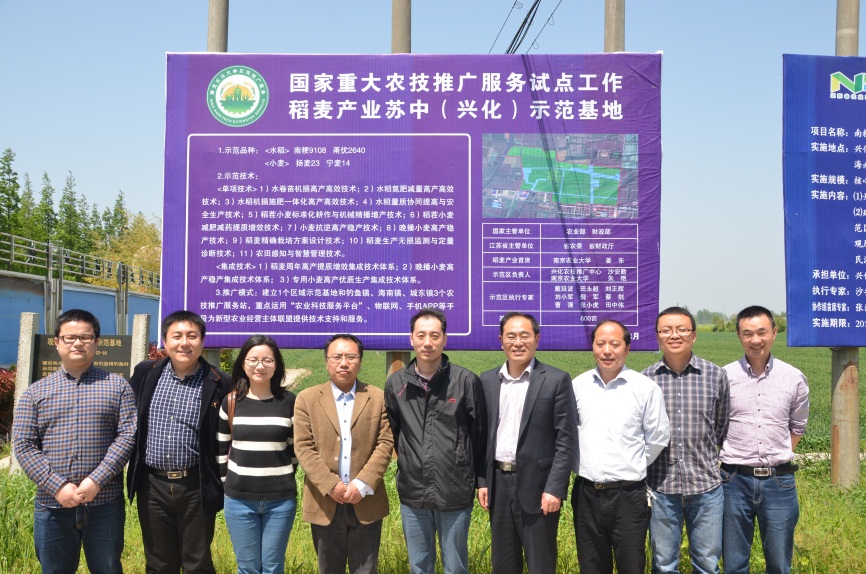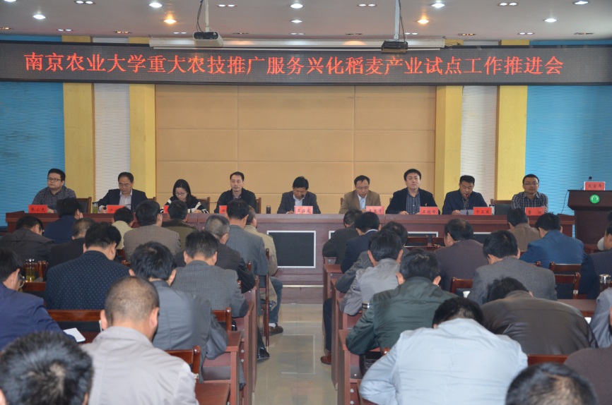 4月19日,为加强试点工作宣传、扩大影响,并进一步推动试点工作,兴化示范基地结合农民日报江苏记者站的调研,召开了“重大农技推广服务试点工作兴化推进会”。农民日报江苏记者站记者黄熙春,兴化市农业局局长吴存发、副局长卞卫东、农技推广中心主任沙安勤,我校新农办副主任李玉清、基地与推广科科长王明峰,我校农学院副院长田永超教授、教师曹强博士、教师张小虎博士,以及兴化市各乡镇示范推广站点技术负责人、稻麦产业新型农业经营主体等近100人参会。会议由卞卫东主持。