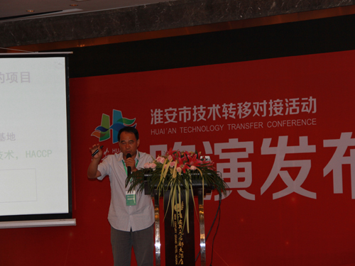 技术转移对接活动有30多家高校科研机构设立了不同的展区。作为2大特展区之一,我校淮安研究院进行了充分准备,今年年初即向学校各学院征集代表性成果及其简介,展出了我校新品种、新产品、新模式、新技术等科技成果。参观者络绎不绝。淮安研究院院长黄瑞华教授作为特选代表,向与会人员分享了研究院建设以来取得的佳绩和未来愿景,并做了精彩的汇报。