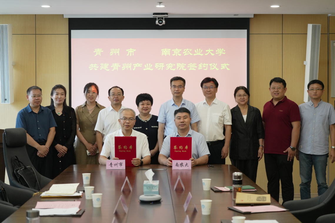 9月8日上午,我校与青州市共建青州产业研究院签约仪式在我校滨江校区会议室举行。青州市委书记宋伟伟,我校校长陈发棣及校地企相关人员参加校地对接会和见证签约仪式。社会合作处处长许承保和青州市委常委、组织部部长郑海代表校地双方签订了共建青州产业研究院合作协议。