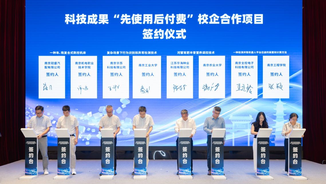 会上,我校参与共建南京市高淳区高校院所联合技术转移中心,旨在有效探索校地融合发展新模式,协同推进科技成果“先使用后付费”等试点改革工作,以联合中心为主要载体,围绕现代农业、绿色食品等产业开展针对性技术转移、成果转化服务。动物科技学院蒋广震教授团队与江苏华海种业科技有限公司开展“河蟹育肥丰膏营养调控技术”科技成果实施许可(“先使用后付费”)合作,动物医学院张炜教授团队与南京惠牧生物科技有限公司开展“动物细菌病人工智能诊断及生态防控体系” 科技成果实施许可(“先使用后付费”)合作。