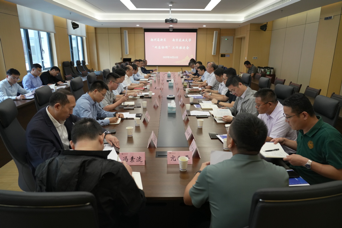 10月13日,南京农业大学与扬州高新区“双高协同”工作推进会举行。扬州市副市长罗雪明,市政府副秘书长袁骏,市科技局党组书记、局长陈江伟,扬州高新区党工委书记、管委会主任闫伟等市、区领导及企业代表;我校副校长丁艳锋,以及相关学院、职能部门负责人出席会议。
