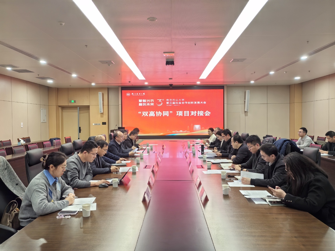 1月17日,南京农业大学“双高协同”项目对接会召开,加快推动落实“双高协同”试点工作,精心谋划布局2026年重点任务与重大项目。南京农业大学党委常委、副校长丁艳锋,南京生物医药谷、南京国家农高区、高淳高新区、扬州高新区等合作园区代表和学校相关部门、学院负责人参加会议。