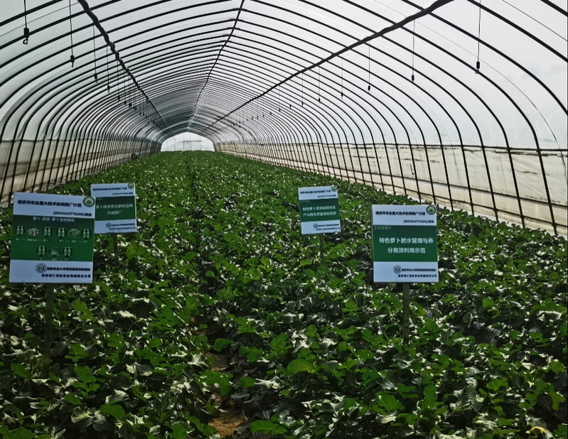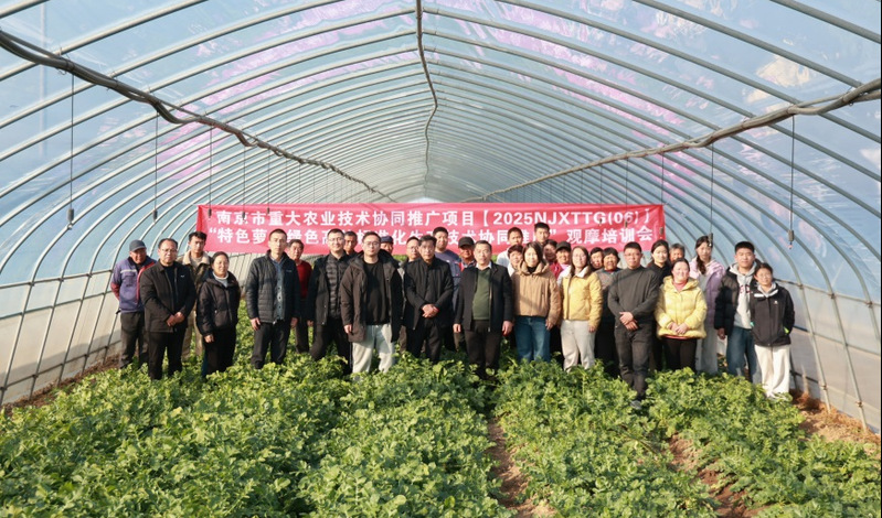 2026年1月13日,我校主持实施的南京市农业重大技术协同推广计划“特色萝卜绿色高效标准化生产技术协同推广”项目【2025NJXTTG(06)】培训观摩与推进会在溧水示范基地成功举行。本次活动由我校牵头组织,南京市农业农村局科教处朱亚楠主任、溧水区农业农村局葛庆松副局长、校社会合作处王克其科长、项目首席专家柳李旺教授与服务团队成员,以及项目参加南京南京普仁有机农业有限责任公司、南京市六合区冬日艳丽蔬菜专业合作社、江苏归来兮生态农业开发有限公司、南京龙盘里农业科技有限公司等单位负责人、技术骨干、种植大户等共40余人参加会议。活动通过“理论培训+基地现场观摩+交流研讨”形式,扎实推进项目实施。